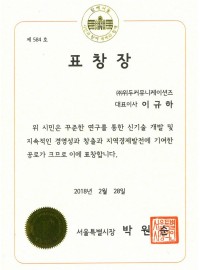 서울특별시장 표창장