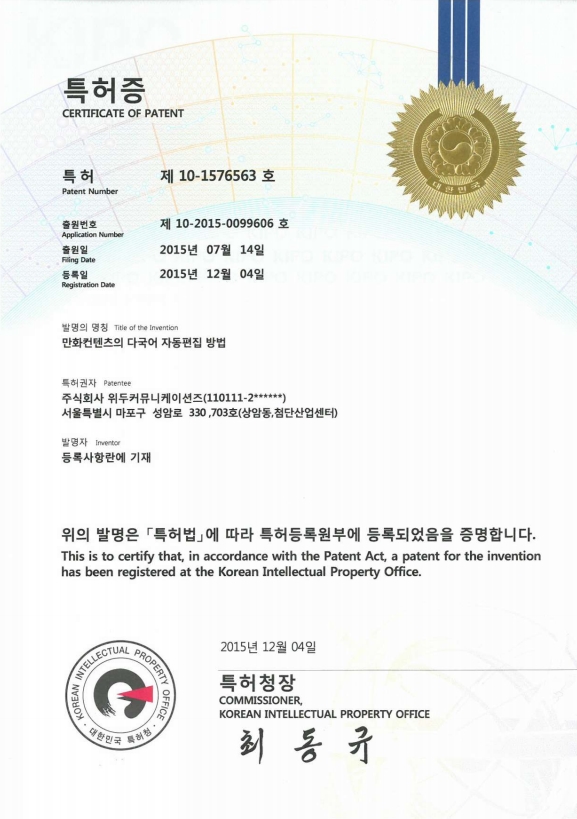[한국/특허] 만화 컨텐츠의 다국어 자동 편집 방법 페이지 정보 작성자 WeDu 댓글 0건 조회 5,898회 작성일 19-05-30 18:49 본문 2015-07-14 특허 10-2015-0099606 만화 컨텐츠의 다국어 자동 편집 방법 List Previous[한국/특허] 전자서적과 연동되는 게임의 제공 장치 19.05.30